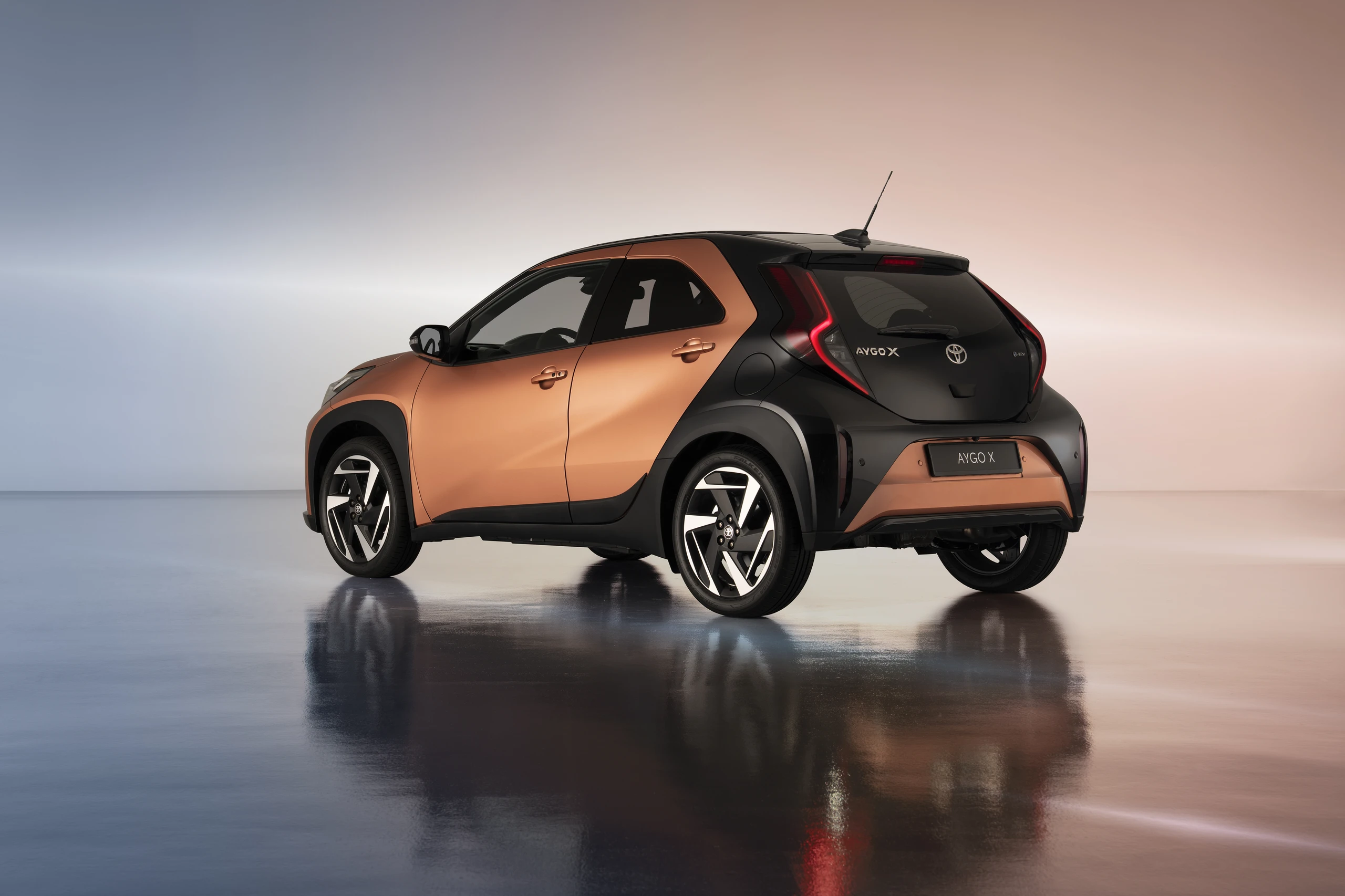 Toyota har fastholdt muligheden for tofarvet lakering med sort tag og sort bagparti. Derudover fortsætter krydderifarverne i form af kanel, jasmin, estragon og lavendel. Desuden vil Aygo X også kunne fås med stoffoldetag.