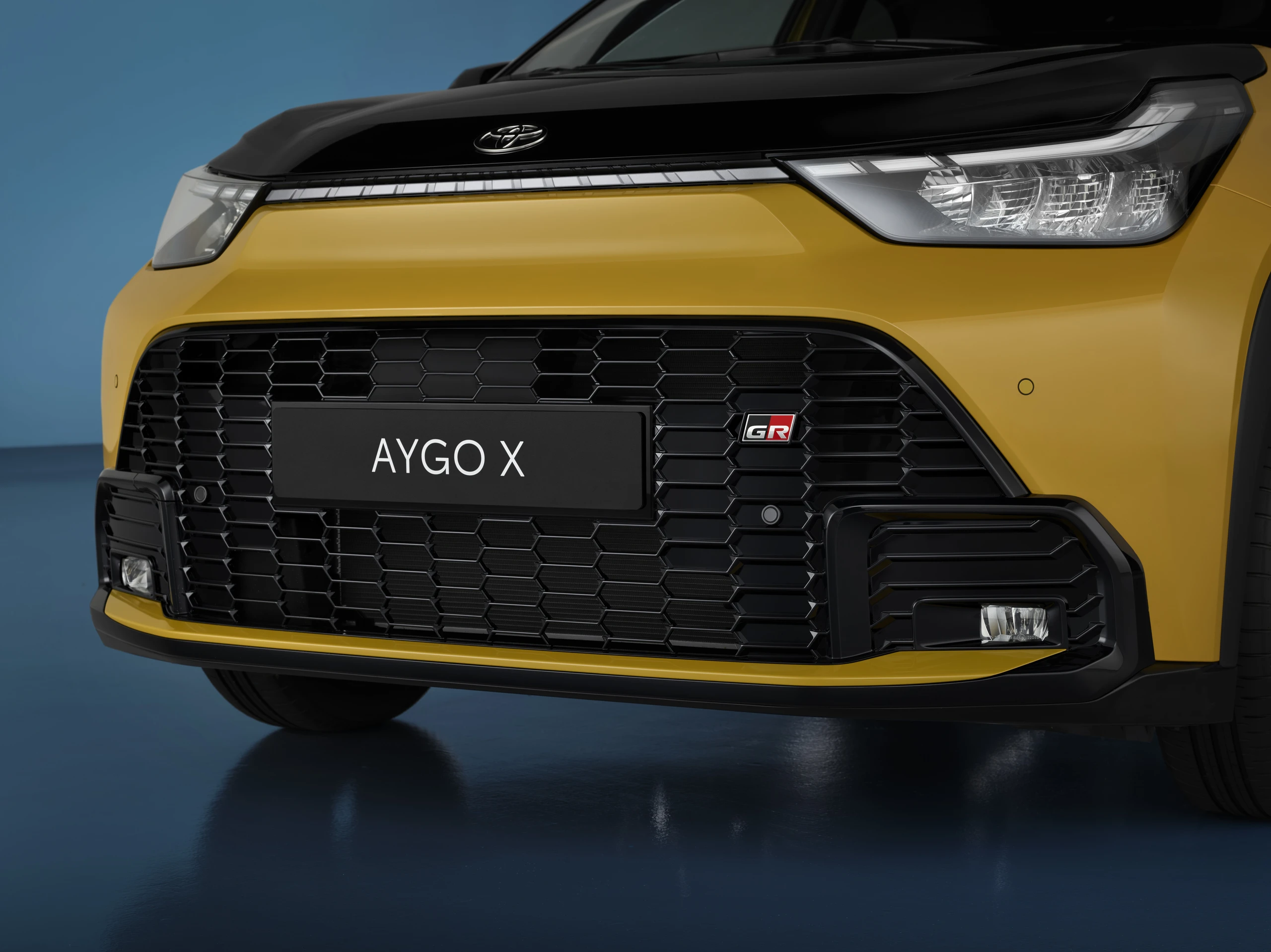 Den sportslige GR SPORT udgave skiller sig ud fra de øvrige udgaver af Aygo X med en særlig sennepsfarvet lakering med sortlakeret tag og sortlakeret bageste del af bilen. Den i forvejen markante frontgrill er gjort endnu mere bemærkelsesværdig med et særligt mønstret gitter kendt fra andre GR-modeller i Toyota-familien. Inde i kabinen, der i GR SPORT udgaven holdes i grå og sorte nuancer, er forskellige GR-logoer nænsomt integreret.