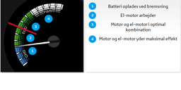 Ved høje hastigheder og hurtig acceleration vil bilen som udgangspunkt ikke køre på ren el, men op en kombination af brændstof og el. Der hvor du får mest glæde ved Hybridteknologien er ved bykørsel.