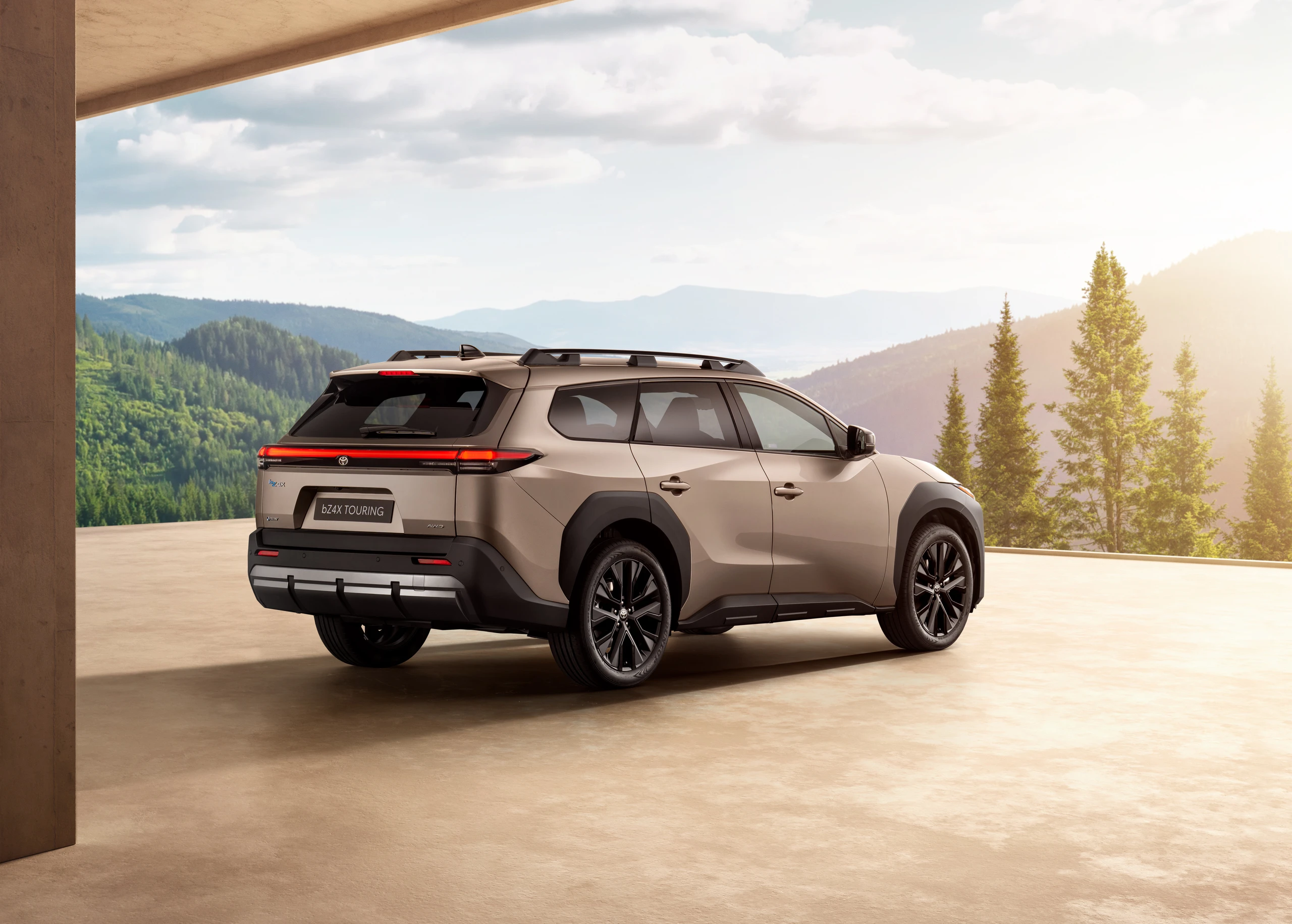 Den største forskel finder man bagtil, hvor den længere bil adskiller sig endnu tydeligere designmæssigt fra sin lillesøster, bZ4X, med et andet og mere friluftsliv-inspireret design af kofangeren og LED-lygtebåndet. Det vil desuden også være muligt at vælge bZ4X Touring i en ny, særlig brilliant bronze metallakering.
